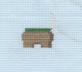 This was stitched on a scrap of 25-count Lugana (I'm not sure of the color, but it's kind of an off-white) with DMC floss. I made a couple of changes. The square in the center of the purple ornament was supposed to be orange and the green in the ornaments themselves were a pale lime green that I didn't like so I used the same green that was used for the lights.