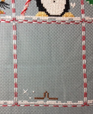 I also stitched on Advent Animals #11, but discovered that I had made a mistake last time and all that has been done has to be frogged. (This may be part of the reason I didn't stitch as much as usual--September was the month of the FROG.)